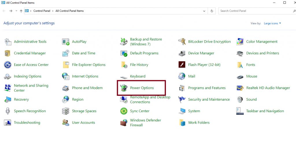 Click Windows Start > Control Panel > Power Options > Click Images and follow steps on the screenshots